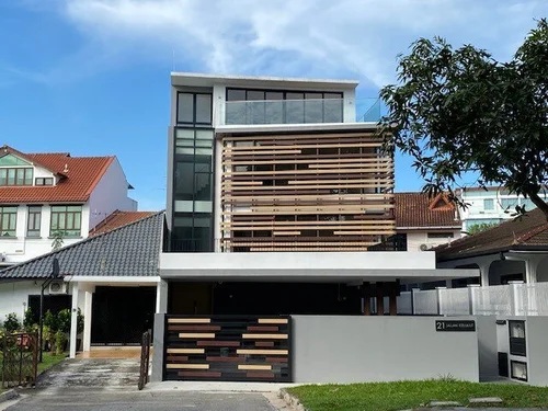 Part of the existing structure is retained in this reconstruction of a 2 storey semi-detached house for budget consideration. The design concept of this small house is very much derived from the constraints.
